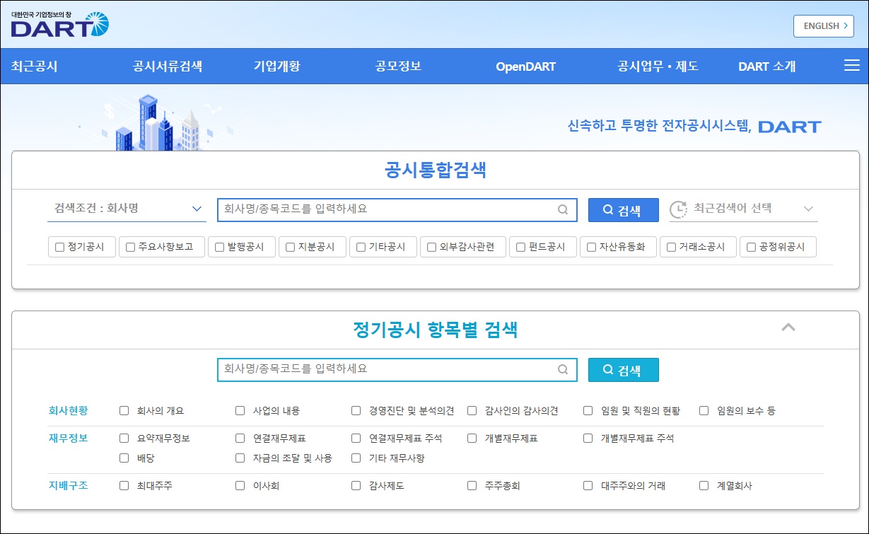 전자공시시스템 (fss.or.kr) >> 전자공시시스템 접속하기!!